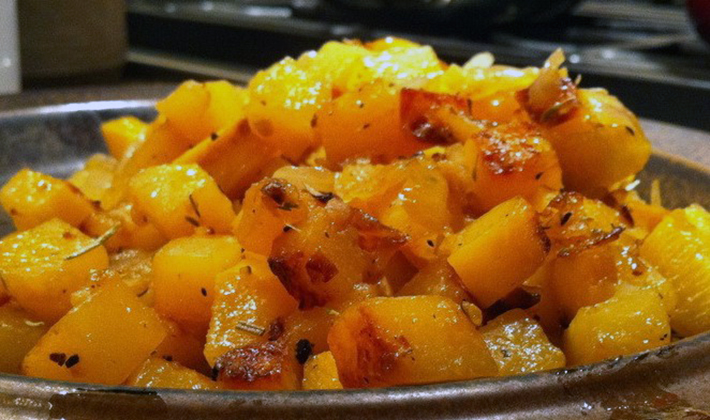 - Faire revenir les tranches de rutabaga avec du ghee ou de l'huile de tournesol jusqu'à formation d'une croûte brunâtre des deux côtés. Cuire au four en ajoutant les champignons marinés.