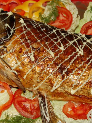 - Carpe à la crème aigre farcie aux champignons