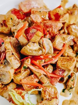 - Champignons au porc et au curry à la crème sure