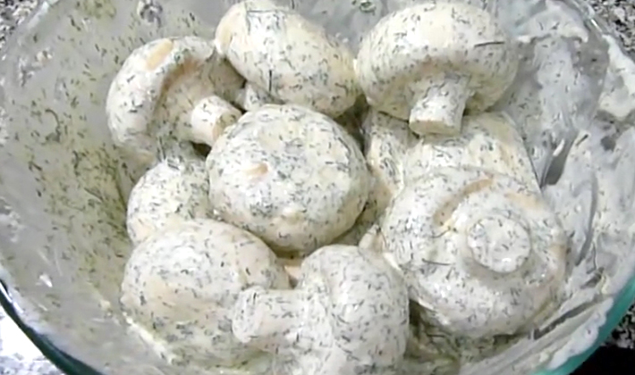 Pour la méthode traditionnelle de trempage, plongez les champignons dans de la mayonnaise ou de la crème sure pour les faire griller.