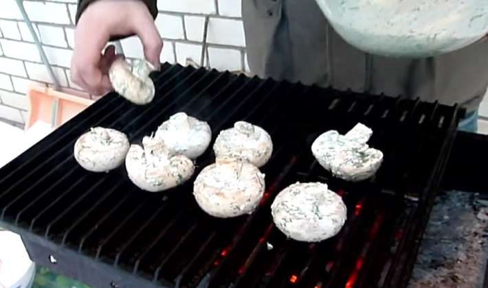 - Les champignons sont cuits sur le gril pendant 15 minutes au maximum, mais vous ne devez pas les laisser pour le moment afin qu'ils ne brûlent pas.