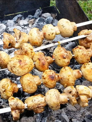 Ensuite, assaisonné avec des épices. Il est nécessaire de ficeler la future brochette aux champignons sur une brochette ou de la placer sur une grille. Après avoir fait frire à feu moyen pendant 5-7 minutes. C’est l’un des moyens les plus rapides de cuisiner le kebab.