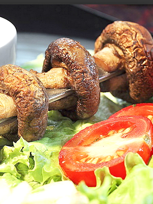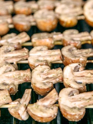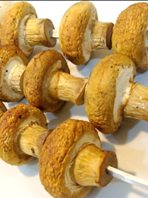 - Pour enfiler des champignons, utilisez des brochettes fines, un grill convient également pour la cuisson.