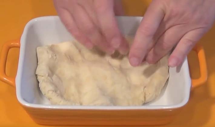 Pressez délicatement la pâte au fond et sur les côtés de la forme et coupez-la un peu avec une fourchette. Cuire au four 10 minutes à 200 ° C.
