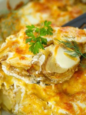 - Pommes de terre aux champignons, courgettes et oignons dans une casserole
