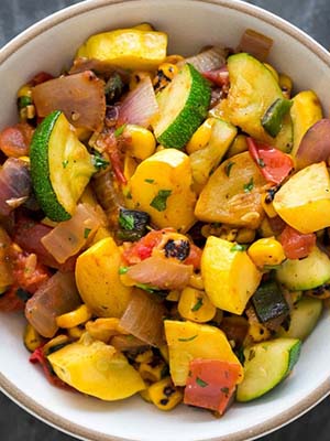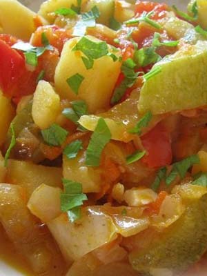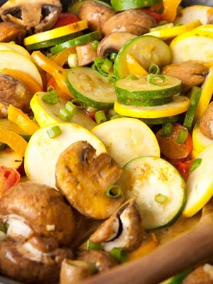 Recette de ragoût de courgettes aux champignons, tomates et poivrons