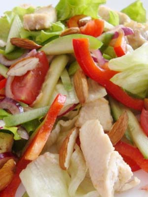 - Salade de courgettes, champignons, poulet, cornichons et tomates