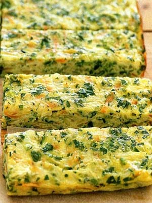 - Courgettes coupées en petits carrés, les faire frire dans l'huile végétale, mettre dans une forme graissée.