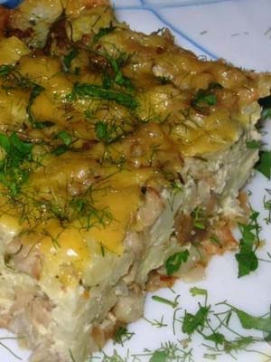 - Mélanger les légumes et les champignons préparés avec du riz bouilli, haché avec des herbes épicées, laisser refroidir.
