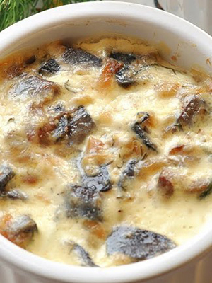 Vous pouvez faire cuire la julienne de leurs champignons frais ou utiliser l'option plus originale - avec des champignons marinés.