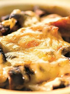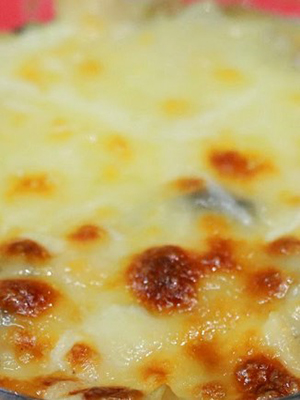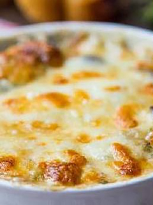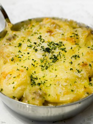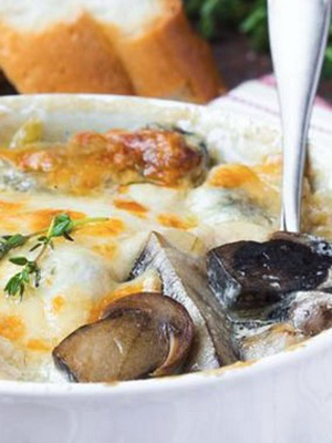 - Julienne de poulet, champignons, fromage et pommes de terre