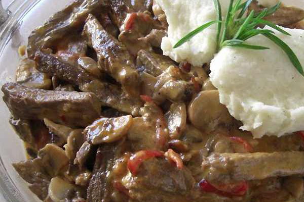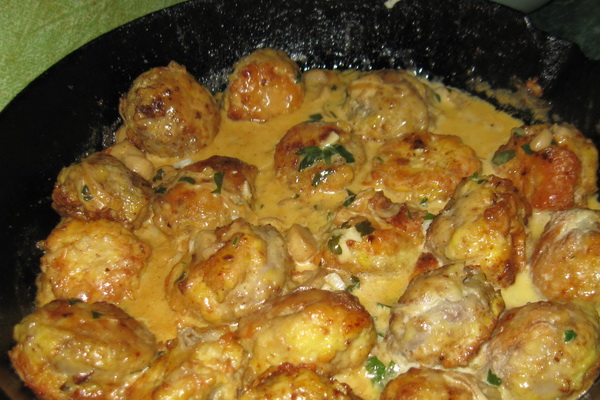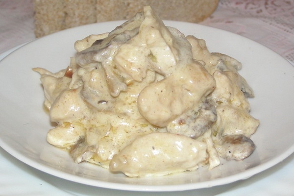- Pour la sauce: 1 1/2 tasse de bouillon de champignons, 1/2 tasse de crème, 2 c. À thé de farine, 1 c. une cuillerée de beurre, sel.