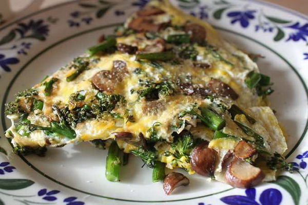 Omelette aux champignons, fromage et courgette