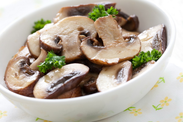 Couper les jeunes champignons pelés en deux, les rincer à l'eau tiède, les sécher et ajouter de l'huile végétale avec du poivre et de la purée d'ail pendant 2 heures. Puis cuire les champignons dans la même huile jusqu'à tendreté. Dans les champignons préparés, ajoutez du persil et un peu de jus de citron.