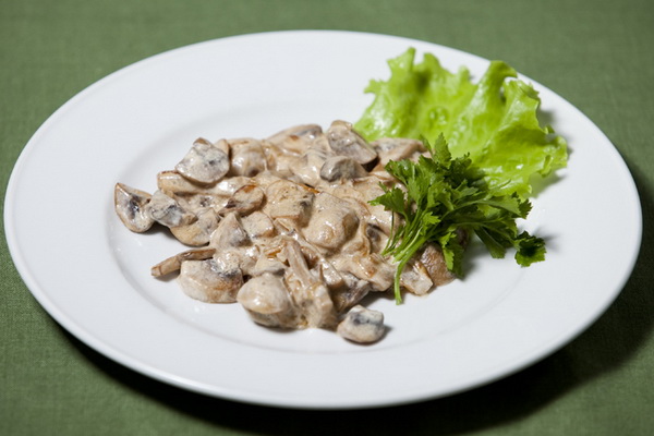 Pour ce plat simple, les champignons doivent être hachés, le sel et le ragoût à l'huile, en ajoutant un peu d'eau bouillante. Lorsque vous êtes prêt, mettez du beurre, de la crème sure, du sel.