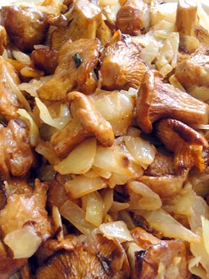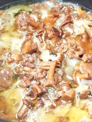 - Ajouter les oignons et les carottes coupés en dés, ajouter les girolles coupées en rondelles et les faire revenir pendant 15 minutes.