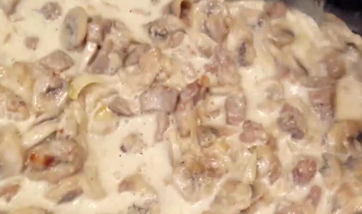 Le porc braisé aux girolles dans une sauce crémeuse est préparé par étapes.