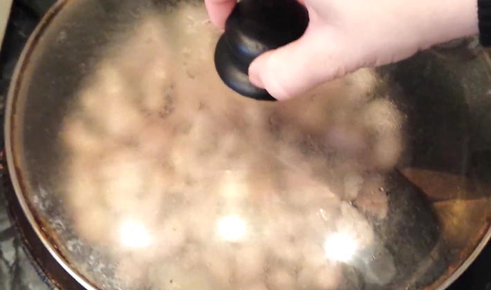 - Les champignons sont tranchés et frits dans l'huile jusqu'à coloration dorée.