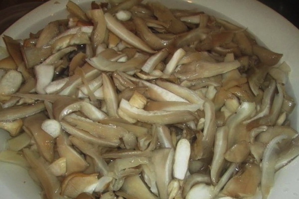 Pleurotes fraîches, pelées et lavées, coupées en tranches, salées avec un peu de sel.