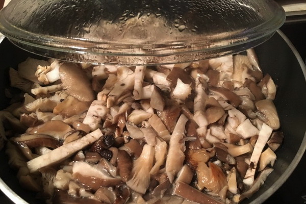 Couper à l'avance les pleurotes bouillies et les faire frire dans l'huile jusqu'à ce qu'elles soient dorées.