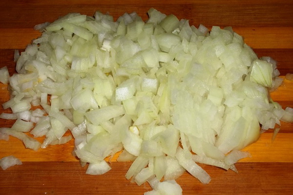 Saler, poivrer, ajouter l'oignon, haché en petits cubes et faire frire à feu moyen pendant 15 minutes.