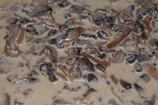Sauce aux champignons huîtres avec la crème verser dans un bol ou une casserole spéciale.