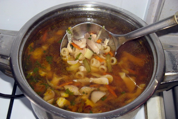 Ce plat n'est pas nouveau et assez familier pour nous, cependant, il a un détail distinctif. Notre soupe sera préparée à partir de cuisses de champignons pleurotes. Je dois dire que dans ce cas, la tige remplira parfaitement le rôle de «viande à l'os», rendant le premier plat très parfumé et riche.