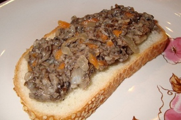 La réponse à la question «Les jambes mangent-elles les pleurotes» devient également évidente à partir de la recette suivante. Vous pouvez faire cuire un délicieux caviar à partir de cette partie des organes de fructification.