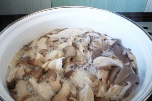 Mettez les pleurotes dans une marinade bouillante et laissez bouillir pendant 15 minutes.