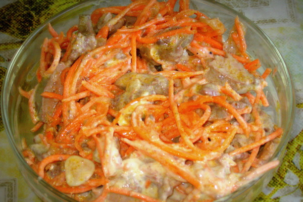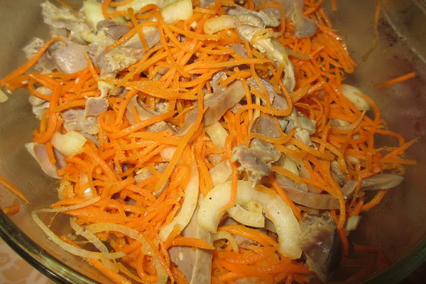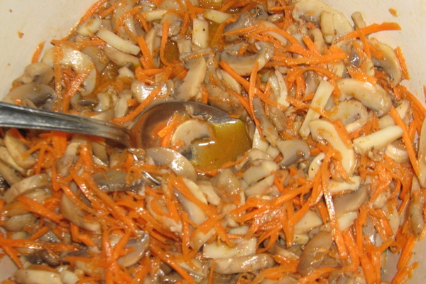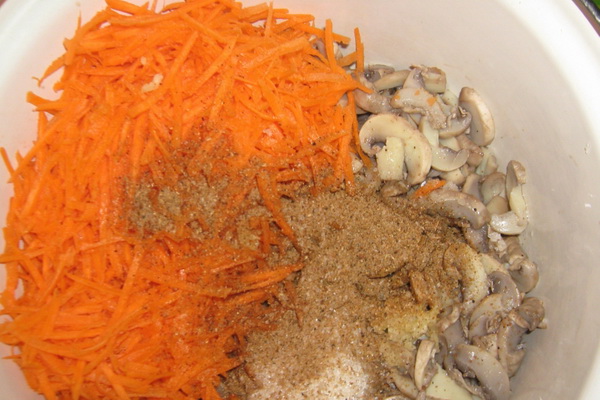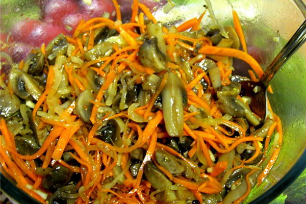 Combinez les champignons refroidis avec les carottes finies "coréennes".
