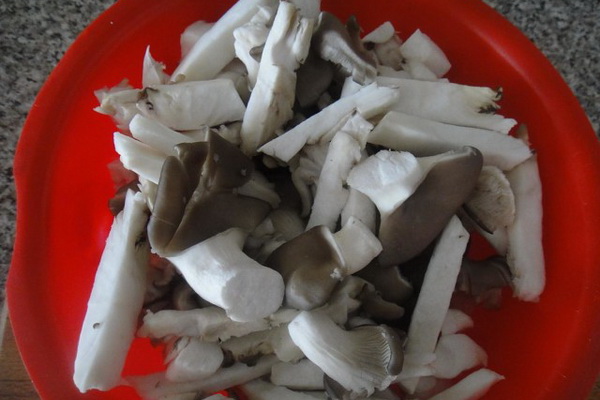 Les champignons à huîtres doivent être propres, rincer à l'eau courante, bien égoutter et coupés en morceaux.