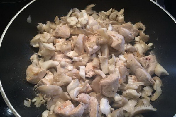La cuisson de la viande avec les pleurotes vous prendra très peu de temps, alors que le plat complète parfaitement la table des fêtes. La recette utilise de la poitrine de poulet, mais si vous le souhaitez, vous pouvez la remplacer par un filet de dinde.