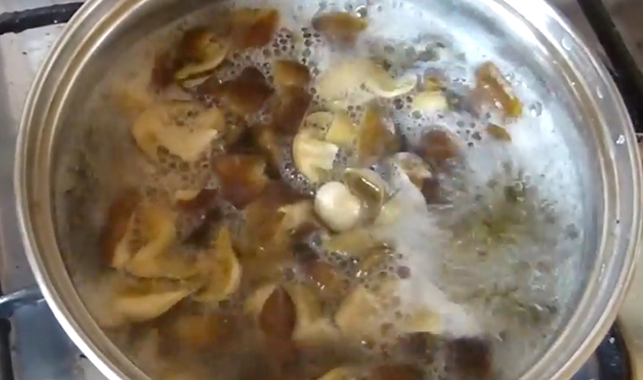 - Faire bouillir les champignons pré-nettoyés et lavés pendant 30 minutes. dans de l'eau salée avec l'ajout d'une petite quantité d'acide citrique. Dans ce cas, vous devez constamment éliminer la mousse de la surface.