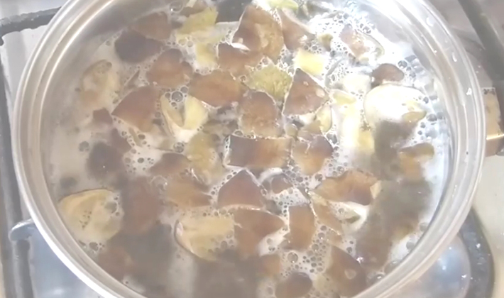Les greenbacks préalablement nettoyés sont cuits à l'eau bouillante pendant 20 minutes.