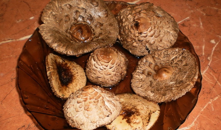 Les recettes pour la préparation du champignon du parapluie bariolé sont légèrement différentes de celles habituelles, car ces corps fruitiers sont volumineux: le diamètre du capuchon atteint 40 cm et la hauteur de la jambe jusqu’à 45 cm.