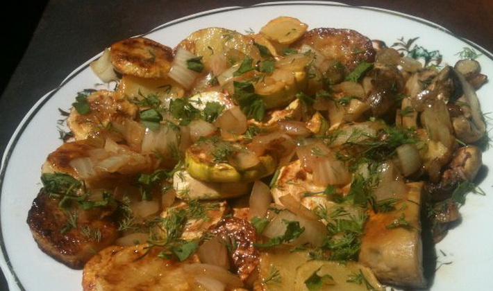 - Introduisez les pommes de terre dans les champignons sautés avec les légumes et laissez-les bouillir pendant 20 minutes.
