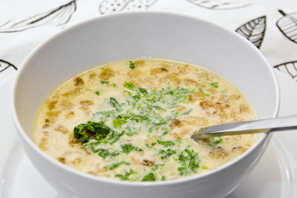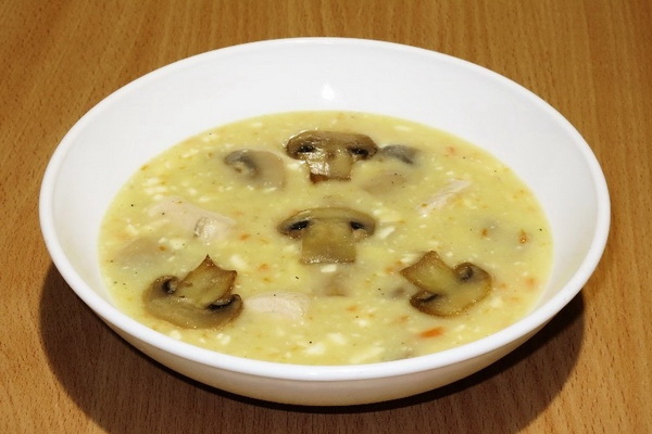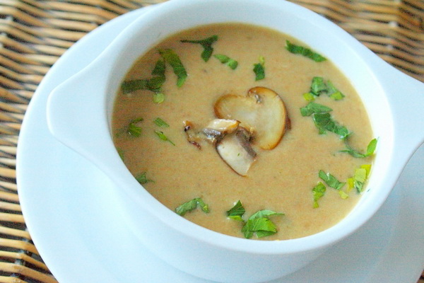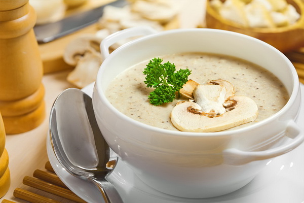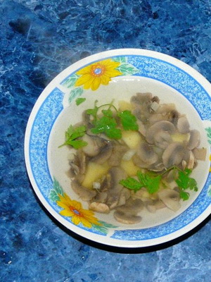 Ajoutez du sel au goût.Préparé selon cette recette soupe aux champignons avec de la crème avant de servir, assaisonner avec du persil.