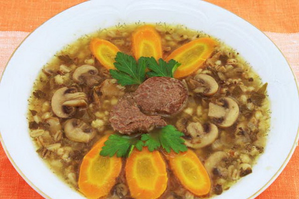 - Comment faire cuire la soupe aux champignons avec de l'orge perlé: recettes maison