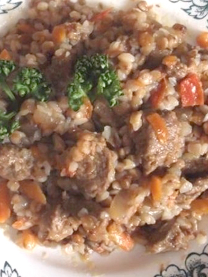 Pilaf de sarrasin à la viande et aux girolles