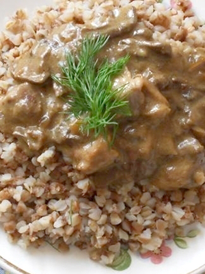 - Sarrasin en sauce «marchands» à la viande et aux cèpes