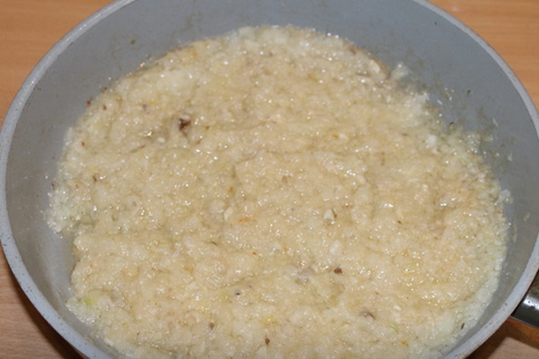 Couper les rondelles d'oignon, les faire frire jusqu'à ce qu'elles soient transparentes et les hacher dans un mélangeur.