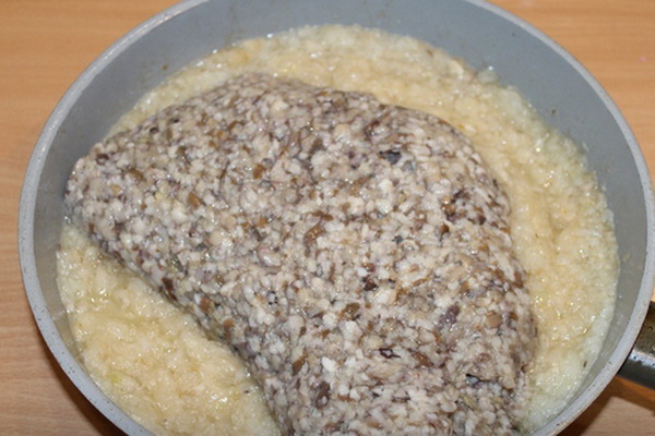 Passez-le dans un hachoir à viande et combinez-le avec les champignons.