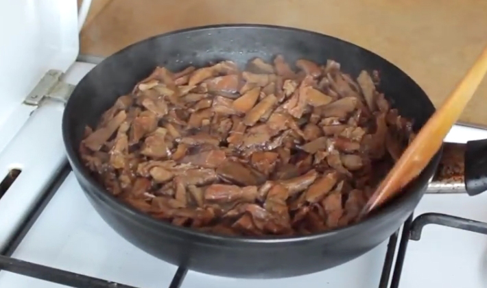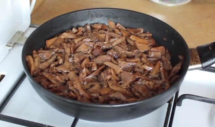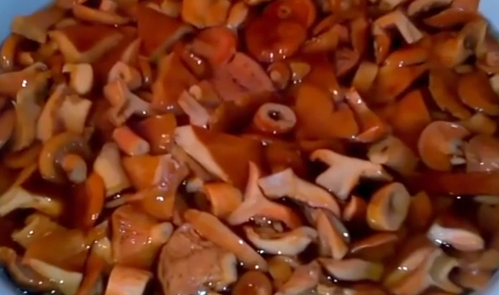 Le remplissage des champignons safran salés pour les tartes est préparé par étapes, selon la description ci-dessous.