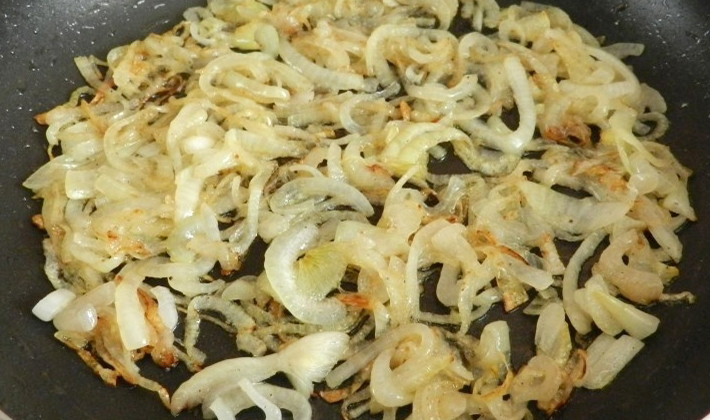 - Faire frire jusqu'à ce que le brun soit doré et ajouter l'oignon coupé en cubes.