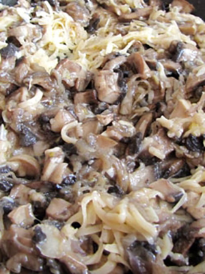 - Faire revenir l'oignon dans le ghee jusqu'à ce qu'il soit tendre et mélanger avec les champignons.