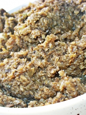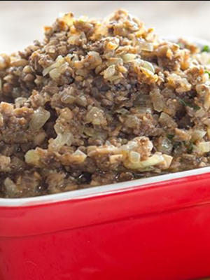 - Twist dans un hachoir à viande et réparties dans une assiette profonde séparée.