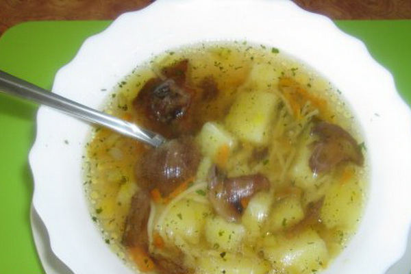 Très souvent, les soupes sont bouillies avec des nouilles faites maison. Comment faire cuire une soupe aux champignons avec du beurre frais et des nouilles faites maison, voir la recette ci-dessous.