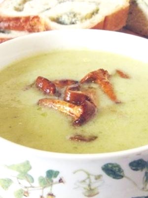 - Le plat est servi en portions avec l'ajout de craquelins. Une telle purée peut être préparée pendant 2 à 3 jours. Avant de l’utiliser, il suffit de la chauffer au micro-ondes.