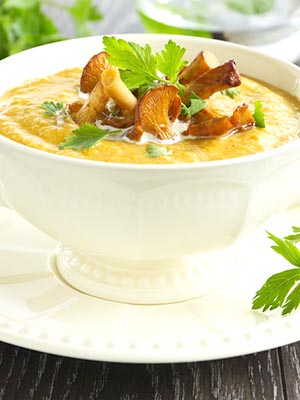 - Soupe de purée de chanterelles aux carottes et au poulet