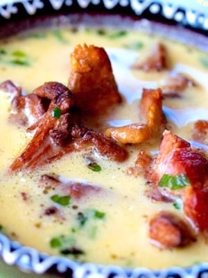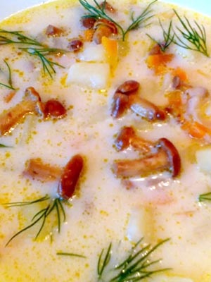 La soupe crémeuse de girolles à la crème s'avère toujours savoureuse, avec une texture crémeuse délicate et un arôme étonnant. Un tel plat réchauffera les jours froids d’hiver, saturera de substances utiles, donnera de la force.